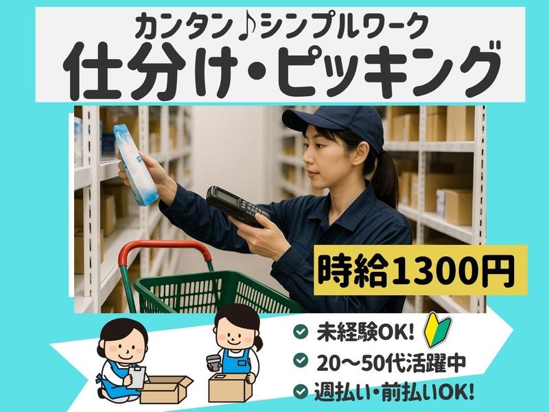 職種/仕事内容 | 仕事内容 【このお仕事のPoint】 ✨時給1300円で週3~5日勤務! ✨土日・祝休みで私生活と両立しやすい! ✨短時間勤務・Wワークも相談OK。 【具体的なお仕事内容】 物流倉庫内で、ドラッグストアに 出荷する商品の仕分けや ピッキング作業をお任せします。 ◎配送先ごとに商品を仕分ける ◎商品を台車やカゴ車に積み上げる ◎出荷前の数量確認や整頓作業 作業はとてもシンプルで、 すぐに覚えられる内容です。 扱う商品は軽いものが多く、 体力的な負担も少なめ! 【よくある不安もご安心ください】 倉庫勤務が初めてでも大丈夫! 先輩が丁寧にフォローします。 入社前に職場見学OK! 実際の雰囲気を見てから決められます。 20代~50代まで、 幅広い世代の男女スタッフが活躍中! 【この仕事が合う人・働き方の例】 ・コツコツと進める作業が好きな方 ・未経験から倉庫・軽作業デビューしたい方 ・Wワークで効率的に収入を増やしたい方 ・安定した職場で長く働きたい方 |