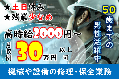 職種/仕事内容 | 仕事内容 オープニングスタッフ募集!!設備保全業務の経験を活かしたい方にオススメ☆高時給のお仕事です! <仕事内容> 設備・機械の故障、改善、補修時のメンテナンスのお仕事となります。 故障対応、設備管理、設備改善等幅広い業務に携わって頂きます。 立ち作業でのお仕事です。 個人作業となります。 《環境》 男性が多い職場です。 ロッカー有り|休憩室完備 アピールポイント <仕事内容> 設備・機械の故障、改善、補修時のメンテナンスのお仕事となります。 故障対応、設備管理、設備改善等幅広い業務に携わって頂きます。 立ち作業でのお仕事です。 個人作業となります。 《環境》 男性が多い職場です。 ロッカー有り|休憩室完備 \充実した福利厚生/ ◎社会保険・雇用保険完備 ◎有給休暇有(6ヶ月経過後、10日付与)※規定あり ◎残業手当 ◎交通費支給(規定内) ◎確定拠出年金制度 ◎週払い制度(週3回対応) ◎お友達推薦制度あり(規定有り) ※1名につき3万円~10万円臨時給与として支給 ◎バイク通勤可 ◎食事持参可 ◎社員食堂あり(1食300円~400円) ◎ロッカー・休憩室利用可 ◎福利厚生プログラム (宿泊、グルメ、ショッピングなど大幅割引が受けられる10万アイテムのメニューがあります。) |