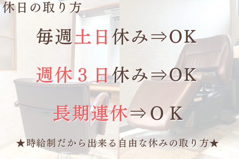 勤務時間 | フレックスタイム制度 勤務時間詳細 9時30分~19時30分の中でご自身が出勤時間を決めてシフトを提出するスタイル お客様がいなくても時給発生して働ける美容室 |