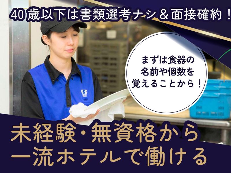 対象となる方 | 求めている人材 学歴不問 おもてなしの心さえあれば、未経験の方でも 第二新卒の方でも大歓迎です。 将来サービス業に従事したい、 一流のホテルで働きたい、 観光業に携わりたいという方大歓迎。 一生活かせるおもてなしの心、 マネジメント能力など、弊社でキャリアを 積むことが出来ます。 <下記の様な方は大歓迎> 「チームワークを大切にしながら働きたい」 「コツコツ作業が得意!」 「誰かをサポートすることが好き」 「安定して働きたい」 「そろそろ正社員デビューしたい」 「シフト管理など、マネジメントや育成にチャレンジしたい」 <未経験から始めた方多数!> キッチンやホテルでの経験がなくても大丈夫。 先輩たちは9割が未経験スタート! 居酒屋・カフェ等の飲食経験者や 清掃・軽作業など様々な経歴の方が活躍中です! *60歳まで安定して働ける職場です。(定年のため) 年齢の条件と理由:あり(例外事由3号のイ・40歳以下(長期勤続によるキャリア形成のため)) |