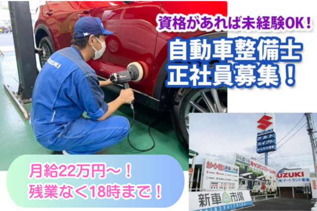 その他 | 備考 <スタッフインタビュー・Kさん・2017年入社・40代男性> Q.入社の経緯を教えてください 「もともとは専門学校で二級整備士の資格をもっていましたが これまでクレーンの運転手をしており整備士の仕事は未経験でした。 結婚を機に引っ越してきて『イチからやってみよう』と転職しました」 Q.実際働いてみての印象は? 「車が好きで自分の車をいじったりはしていましたが 実際に働いてみると色んな車を扱えるため 知識がどんどん身に付いていくことが楽しいですね! いきなりではなく少しずつ仕事を覚えていけたことも助かりました」 Q.転職して良かったことは? 「個人的なことですが、子どもが生まれたので 定時で上がれるのはすごく働きやすいです。 だいたい18:30には家に帰れていますよ(笑)」 Q.どんなヤリガイ、楽しさがありますか? 「自分で点検して故障の原因が分かり直った時は嬉しいですね。 お客様にも感謝いただけるのでヤリガイのある仕事だと思います」 Q.メッセージ 「私のように、資格があっても仕事の経験がない、ブランクがある という方でもイチからスキルアップできます。 ベテランの方も多いので何でも聞きやすい環境です。 車が好きな方であれば楽しく働けますのでぜひご応募ください!」 |