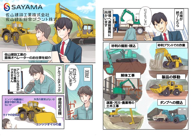 職種/仕事内容 | 仕事内容 ≪未経験でも安心の環境♪≫ ■◆■━━━━━━━━━━━━━━━ 【地域に根ざした安定した職場環境】 ✨未経験者歓迎! 丁寧な指導で安心スタート ✨資格取得支援制度あり! スキルアップを応援 ✨有給休暇消化率100%! プライベートも充実 ━━━━━━━━━━━━━━■◆■ <具体的な仕事内容> ✅原石の掘削、ダンプへの積込、土木工事・解体工事での機械作業 ┗現場への直行直帰OK。基本的には十勝管内 ✅車両の点検・整備 ┗清掃、グリスアップ、オイル交換 タイヤ交換など ✅道路の除雪作業の補助や排雪作業 ★*.───アピールポイント─────.*★ ☆免許を取得したばかりの方や、 運転経験が少ない方も歓迎! ☆資格取得支援制度を活用して、 さらなるスキルアップが可能! ☆社員の努力をしっかり評価! 勤務優秀者や永年勤続者の表彰制度が あります! ☆多種類の建設機械の運転が可能な方は、 給与面で優遇いたします。 ☆未経験の方でも安心して働けるよう、 入社後は先輩社員が丁寧に指導し、 業務に必要なスキルをしっかり 身につけていただけます。 <1日の業務例> 7:00~ 出社、車両点検 7:15~ 作業開始 12:00~ お昼休憩 13:00~ 業務開始 17:00~ 業務終了 ┏━━━━[会社の取り組み]━━━━┓ ✨仕事内容や職場の雰囲気を 知っていただくために、SNSや ホームページで情報を発信しています。 特に、仕事内容を漫画で紹介する 取り組みは、未経験者にも 分かりやすいと好評です。 ぜひご覧ください。 https://sayama-kensetsu-kogyo.com/ ┗━━━━━━━━━━━━━━━━━┛ |