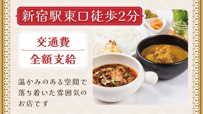 職種/仕事内容 | 仕事内容 ★☆オシャレな空間で、伝統カリーをお客様へお届け☆★ 新宿駅すぐ!中村屋が手掛ける、 カフェレストランでのお仕事です。 私たちと一緒にお客様へ伝統の味と 落ち着いた空間をご提供しませんか? \この求人おすすめポイント!/ ●未経験歓迎!丁寧な研修あり ●週2日〜、1日2時間〜OK!シフト融通◎ ●食事手当あり!(1日300円) ●土日祝に勤務可能な方は積極採用中! \お仕事内容/ 【ホール】 ・ご案内、オーダー取り、料理の提供 ・お会計(レジ)など接客業務全般 【キッチン】 ・簡単な仕込み、盛り付けなど調理補助 ・洗い場など、できることからスタート♪ バイトデビューも応援! 未経験からでも安心してスタートできるよう、 丁寧な研修をご用意しています◎ ※日本語検定(にほんごけんてい) N1レベル以上の方の募集です。 \シフトは超柔軟!働きやすい環境整ってます!/ 「テスト期間はシフト減らしたい」 「平日のみ、家事と両立しながら働きたい」 「Wワークで働きたい」「扶養内で働きたい」 といった相談も大歓迎! ライフスタイルに合わせて働けますよ◎ \レストラン&カフェ マンナ 新宿中村屋とは…?/ 創業100年超の老舗「中村屋」の直営店として、 伝統の味と落ち着いた空間を提供しています。 看板メニューの“純印度式カリー”をはじめ、 デザートやドリンクも充実! 幅広い年代のお客様にご来店いただく、 あたたかい雰囲気のカフェレストランです。 |