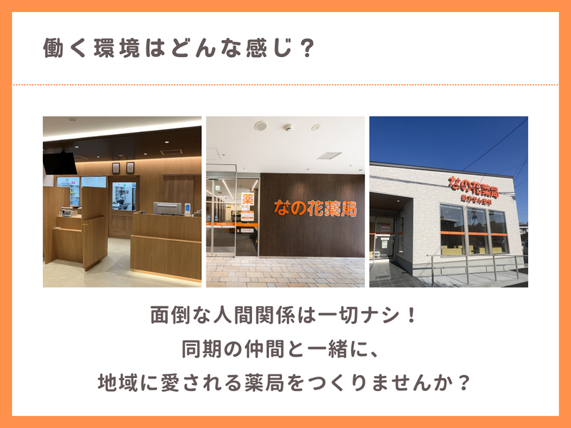 職種/仕事内容 | 仕事内容 \子育て世代も安心✨/ 地域に寄り添う「なの花薬局」で、医療事務デビューしませんか? 既存の店舗で、 受付対応やデータ入力などの基本業務 薬剤師をサポートするための調剤補助業務 近隣施設等への配達業務 をお願いしております ⭐未経験・無資格OK!丁寧な研修で安心✨ ⭐日祝休みでオフも充実♪ ⭐残業ほぼナシ◎ ⭐子育て世代も安心◎急なお休みにも理解あり! ⭐軽自動車での施設訪問あり!ちょっとした気分転換にも 地域の方の健康を支える「なの花薬局」で、 あなたのやさしさを活かしてみませんか? 未経験からでも、一つひとつ丁寧にお教えします。 ■どんなお仕事…? ┈┈┈┈┈┈┈┈┈┈┈┈┈┈┈┈•• なの花薬局にて、 地域の皆様の健康をサポートするお仕事です。 ✅ 受付・患者様対応 処方箋の受付や会計、ご案内など、 薬局の“顔”となるお仕事です。 笑顔で対応するだけで、患者様に安心感を届けられます♪ ✅ データ入力 処方箋の内容を専用システム(レセコン)へ入力します。 文字入力ができればOK。 難しいパソコン操作はありません。 ✅ 薬剤師サポート お薬の準備の補助や書類整理など、 薬剤師さんが業務に集中できるようサポートします。 ✅ 介護施設へのお薬お届け・セット業務 近隣の介護施設へ社用車(軽自動車)でお薬をお届けします。 重い荷物はなく、事務仕事の延長線上のイメージで安心です。 「外に出て気分転換できる!」と好評の業務です♪ ■未経験でも安心スタート✨ ┈┈┈┈┈┈┈┈┈┈┈┈┈┈┈┈•• 「医療事務って難しそう…」という方も大丈夫◎ 入社後は先輩スタッフが 受付対応や入力の仕方から丁寧にレクチャーします✨ 質問しやすい雰囲気なので、 わからないこともすぐ聞けます♪ ⭐ 採用担当からメッセージ ───────────── 子育て中のスタッフも多く、 急なお休みにも理解がある職場です。 ライフステージが変わっても 安心して長く働ける環境で、 新しい一歩を踏み出しませんか? ■当社について ┈┈┈┈┈┈┈┈┈┈┈┈┈┈┈┈•• 株式会社なの花西日本は、 東証スタンダード上場 「メディカルシステムネットワーク」の グループ企業です。 西日本を中心に450店舗以上の 「なの花薬局」を展開し、 地域の皆様の「かかりつけ薬局」として 信頼をいただいています。 |