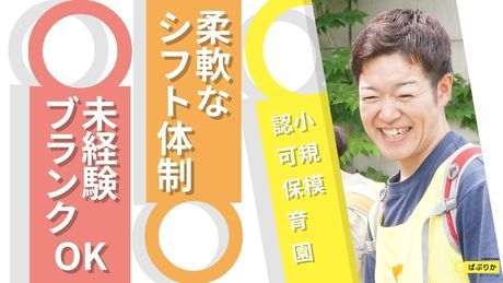 職種/仕事内容 | 仕事内容 <お仕事内容詳細> あおぞら保育園は、0歳児から5歳児までそれぞれ5名ずつ、定員30名の認可保育園です。 認可保育園でのご経験がなくてもOK! 具体的には以下の業務をお願いします。 ■0~5歳児の保育業務 ■連絡帳/記録業務 ■各種研修参加 ■保護者/見学対応 など |