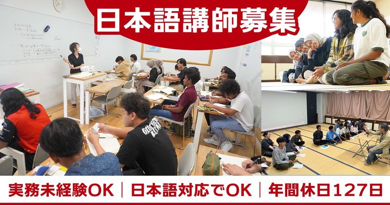 職種/仕事内容 | 仕事内容 << ココがポイント >> ◆日本語教育の経験を活かせる! ◆安心の対面授業! ◆日本語のみの対応でOK! ◆安定感と充実感のある職場環境 ◆設立39年!県内規模はトップクラス ◆年間休日127日!土日祝休み! ◆昇給年1回、賞与年2回あり! << 仕事内容 >> ■授業(1コマ90分/30名程のクラス) 日本語授業の実施・事務作業のお仕事♪ ◎具体的には・・・ ・授業内容の企画、構成 ・授業の実施(教える内容は、日本語の基本的な文法や表記等) ・学生への個別指導 ・イベント企画、開催 ・資料の作成、確認、整理 ・データ入力 ・電話、来客対応 ・オリジナル教材の開発 ・学生の就職、進学支援 ・海外の学生募集担当 など ※シラバスに沿って授業を行います。 使用したい教材や、 取り入れたいものがあれば 相談の上アレンジもOK! ※授業の事前準備等は特になし! 指導負担が少なく教えやすい環境です。 「こんな働き方がしたい!」 「こんなことに挑戦したい!」という あなたの希望をぜひお聞かせくださいね。 一緒にあなたらしい働き方を考えましょう! 雇用形態:正規職員 学生は2学年制で 入学時期が年4回に分かれています!(4,7,10,1月入学) |
