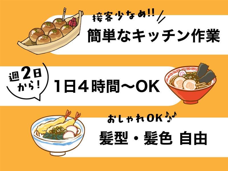 職種/仕事内容 | 仕事内容 ╋━━━━━━━━━━━ ✅清潔感があってきれいな店舗 ✅接客少なめ、簡単なキッチン作業がメイン ✅清潔感があれば髪型・ネイル・ピアスもOK ━━━━━━━━━━━╋ 《同じ施設内の2店舗での勤務です》 ラーメンを中心としたメニューを提供する飲食店「めし処 美熊屋」と「たこ焼き 全回転」でのお仕事です! <めし処 美熊屋> スープや具材は仕込み済みなので、開店前の準備は不要!温めたスープに麺と具材を盛り付けて調理完了! 難しい調理はないので、料理したことがない、なんて方でも安心してスタートして頂けます! 働き方のイメージは高速のSAのフードコートに近い感じです! お客様が食券を購入し、それを受け取り準備するので、レジでのおつり間違いやメニューを間違う心配もなし!! 【具体的な仕事内容】 ・食券を受け取る ・簡単な調理 (麺を茹でる、盛り付けるなど) ・お渡し ・テーブル片付け ・食器洗い ・店内清掃 など <たこ焼き 全回転> プレートに生地を流し込んだら、プレートが振動して自動でたこ焼きがキレイに丸く焼き上がる最新マシンを使用しているので安心してください! たこ焼きが焼けたら盛り付けてお客様にお渡しします。 メニューも多くないので、料金もトッピングもすぐに覚えてサクサク働けますよ! ー ビックマーチ東習志野店に併設されているので、遊技の合間に来店されるお客様もいらっしゃいます。 お友達との会話を楽しむ方や、少し休憩するために来店される方など、ゆっくり時間を過ごされる方も多いので、くつろげるような雰囲気作りも大切。 お客様の目的に合わせた接客を心掛けましょう!ピーク時間は少し遅めの14~15時。 この時間帯は回転が速いので時間が経つのもあっという間!スタッフ同士フォローし合ってチームプレーで働いています。 夜は比較的落ち着いて作業していただけますよ。 シンプルな仕事内容で覚えやすいからスグに慣れて頂けます! 新商品が出る際は、店休日などを利用して研修を行っています。 調理方法もしっかり学べて、試食もできるから、お客様に「このメニューはどんな味?」なんて聞かれてもスムーズにお伝えできますよ! ー |