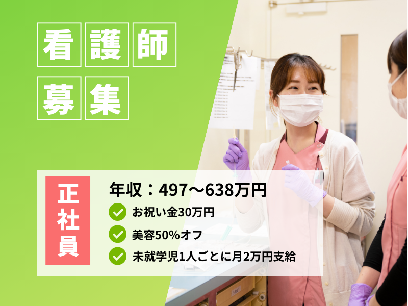 職種/仕事内容 | 仕事内容 【この求人のポイント】 ★【年収497万円~638万円】 ★お祝い金30万円 ★子育て支援 子供1人ごとに月2万円 ★配属希望相談OK ★看護学生に奨学金制度 ★美容50%オフ ★見学可能 たまき青空病院グループは1940年に創立し、医療・介護を通じて地域貢献に取り組んでいます。 一般診療に加えて、専門外来・透析センター・健診センター・リハビリテーションセンターなど専門部門で、かかりつけ医としての幅広い診療だけではなく、専門的な診療を行っています。 病床は100床(DPC:20床、地域包括ケア:40床、療養:40床)があり、一般急性期・回復期・慢性期と、幅広いステージの患者さんの受け入れを行っています。 【業務内容】 入院患者の看護業務全般 ※入浴・シーツ交換・入浴介助は専任の介護スタッフが行います。 ※未経験の方やブランクのある方でも丁寧に指導いたします。 ※日勤のみの相談も可能です。 【キャリアを生かした働き方が可能】 外来・透析・病棟(DPC・地域包括ケア・療養)・訪問看護・介護施設などの複数の部署があり、みなさまのこれまでのキャリアを活かした働き方ができます。認定看護師取得のための応援実績あり。 |