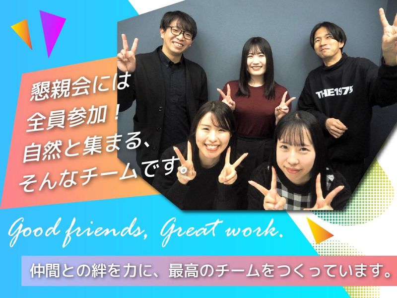 職場環境・雰囲気 | 職場環境 関西は昨年より本格スタート! 定着率90%以上で気さくな メンバーが多いのが特徴です。 平均年齢は31歳で男女比6:4、 ほとんどが中途入社のため、 あなたもすぐ馴染めると思います。 経験者の方はリーダーや早期昇格も 望めるチャンス溢れる環境です。 |