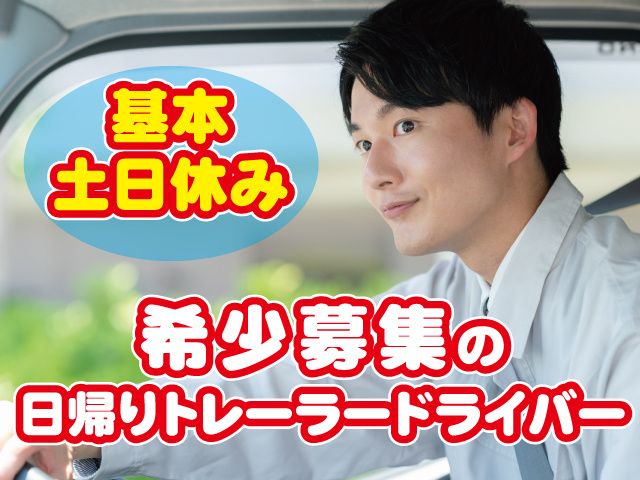 職種/仕事内容 | 仕事内容 業務拡張!増車に伴う、 希少募集のトレーラードライバー! 日帰り/日勤便のスタッフ増員募集 平均月収35万円! 頑張り次第でそれ以上も稼げる! 海上コンテナ輸送トレーラーの運転手 東京湾⇔群馬県/栃木県近距離輸送 \アピールポイント/ ━━V━━━━━━━━━━━━━ ・年齢不問/近距離輸送ドライバーの募集! ・基本土日休み、週休2日/日勤のみ! ・スタッフ仲もよく、働きやすい職場環境! ・未経験者/異業種からの転職者も活躍中! 親切/丁寧に研修致します。 【仕事内容詳細について】 ━━V━━━━━━━━━━━━━ 足利市梁田町の当社事業所より、 海上コンテナ輸送トレーラーにて 東京湾の埠頭に向かい、 群馬県内/栃木県内の行き先に (太田市内/足利市内等両毛エリアが中心) コンテナを輸送します。 1日往復250km~300km程度の走行 <研修について> トレーラー運転経験の有無に関わらず、 入社当初は、同乗研修でルートや 輸送の流れを身につけていただきます。 同乗研修後に一人での 輸送となりますので、ご安心ください。 【応募について】 ━━V━━━━━━━━━━━━━ WEB応募または、お電話にて ご応募ください。 面接でお会いしましょう! 質問だけも受付致します。 気兼ねなく、ご連絡ください。 <電話番号>: TEL.0284-64-8794 TEL.090-6797-7475 ※この求人情報をご覧になっての セールス・勧誘等の 「求人応募外」の連絡は、 ご遠慮いただきますよう、 お願い致します。 事業内容/一般貨物自動車運送業 本社/栃木県足利市山下町 事業所/栃木県足利市梁田町 採用ホームページ/ https://entori.jp/dct-trance ━━ |