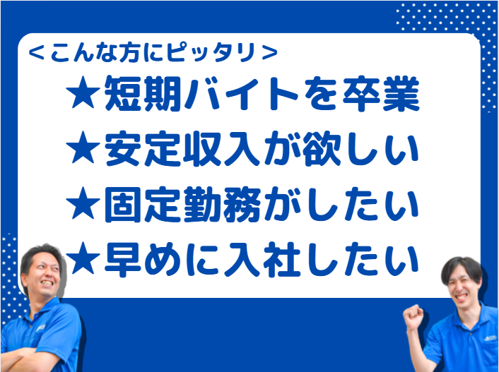 職種/仕事内容 | 仕事内容 \⭐お休み充実!ムリなく働ける⭐/ ✅年間休日121日×土日休み ✅GW・お盆・年末年始の長期連休アリ ✅日勤専属で生活リズムも整う ✅残業ナシ!基本定時退社♪ 「働くなら、お休みは重視したい」 「プライベートも大切にしたい」 そんなあなたにピッタリのお仕事を ご紹介いたします◎ \未経験者歓迎!!/ 軽量部品を扱うので身体への負担も少なめ♪ 生産協力金3万円!!(規定有) 軽自動車、後部座席窓用の 日除けシートの製造・組立・検査を お願いいたします。 具体的には、窓サイズにカットした遮光シートに プラスチック製の部品を組付けて製品にします。 工具はあまり使いません。 製品拭き取り等の補助作業もございます。 未経験でも始めやすいのがポイント! 「モクモク作業が好き」 「人としゃべるのはちょっと苦手…」 という方にオススメです◎ シンプルな作業の繰り返しなので、 未経験でも安心して始められます! ▼好条件! 土日休み&各種大型連休ありで年間休日121日 ワンルームの個室社宅を完備! 自宅からマイカー通勤もOK!(無料P完備) 職場には個人ロッカー・休憩室、 食堂・冷蔵庫・電子レンジも完備! ▼未経験者活躍中 研修充実×単純作業! 組み立て業務未経験者はもちろん、 工場・製造業未経験という方でも大丈夫◎ イチからしっかりサポートしますよ! |