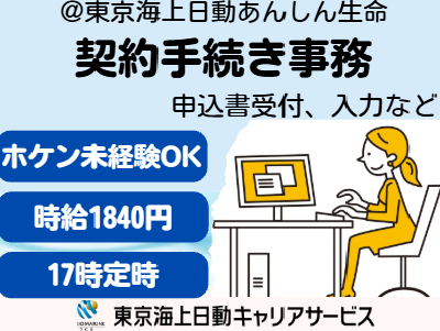 職種/仕事内容 | 仕事の内容 \金融業界経験ある方へ/ ◆ホケン未経験OK!研修あるので安心スタート☘ ◆17時定時&残業少でも月24万~ ◆多数の派遣スタッフさん安定ご勤務中 【基本情報】 雇用形態:派遣社員 雇用期間:長期(3カ月以上) └2月~開始日相談可能 就業時間:9:15~17:00(休憩60分) 【必須条件】 ◆金融業界にてご勤務経験がある方 ◆パソコン:基本操作(入力~修正) 【お仕事内容】 ・保険申込書の受付~チェック、不備訂正~証券発行 ・専用システム、Excelへの入力 ・ファイリング ・社内からのお問い合わせ対応(内線対応) ▼研修があるので、ホケン未経験の方もご安心ください! 【環境面等】 @荻窪駅から徒歩3分<Daiwa荻窪タワー内> 東京海上日動あんしん生命の事務センター ・30代・40代・50代の多い職場 └女性が多くご勤務中 └派遣スタッフさん安定ご勤務中! └研修あり/わからないことは質問、確認をしながらオシゴトできる環境です ・ランチタイムは休憩スペース利用OK └お弁当持参OKです ・オフィスカジュアル内で服装自由 【福利厚生等】 ・社会保険完備 ・ベネフィット・ステーション ・定期健康診断あり ・禁煙オフィス!煙苦手な方も安心 ・平日のみOK!土日祝休み ・年間休日120日以上&お休み相談可 └有給休暇 ○●ご応募検討中の方へ●○ 金融機関などで事務経験がある方、大歓迎☘長く安定してご勤務したい方にピッタリのお仕事です。 少しでも気になった方は、ぜひお気軽にご応募ください♪ ○●嬉しいPOINTたくさん!●○ 履歴書不要!開始日相談OK/長期×フルタイム/ブランクOK!ホケン未経験OK/研修あり/基本17時帰り*残業月5~10時間ほど/収入とプライベートのバランス良くご勤務いただけます |