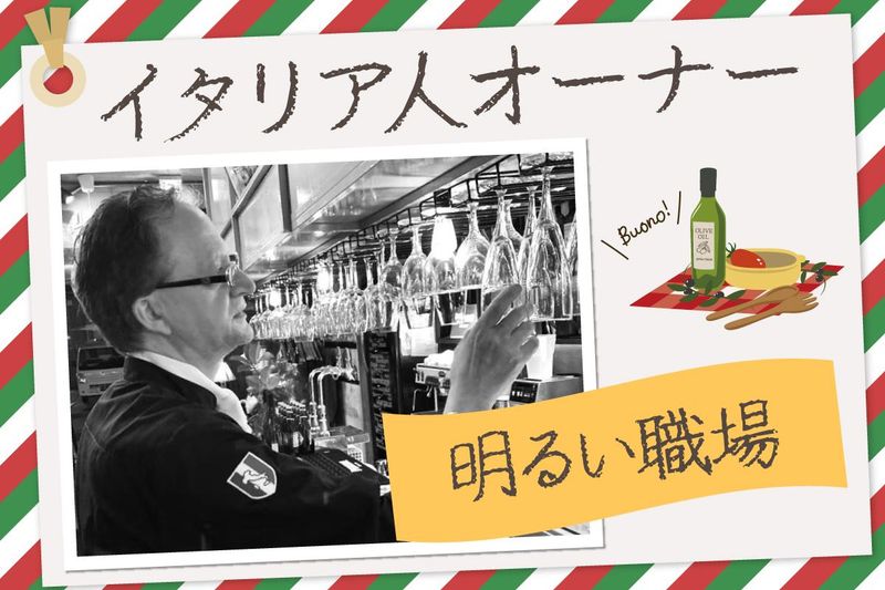 対象となる方 | 求めている人材 / ✨レストランや飲食店でのフロアレジ打ち経験者 歓迎 ✨イタリアンや飲食業に興味がある方歓迎 \ 接客や料理に興味がある方なら、 飲食バイトが初めての方もOK! ◆学校と両立しながら働きたい学生さん ◆Wワークで稼ぎたいフリーターさん ◆人と話すことが好き ◆明るい職場で働きたい ◆イタリアの文化や言葉に興味がある そんな方なら大歓迎です♪ …………………………………………………… ┏━━━━━━━━━━━━━━━━━━┓ ┃★ 温かい雰囲気が自慢のお店です ★┃ ┗━━━━━━━━━━━━━━━━━━┛ 日本語(関西弁)を話すイタリア人オーナーと 日本人スタッフが運営する 外国語が飛び交う楽しいお店! 本場イタリア・プーリア州出身のオーナーは 日本はもちろんアジア各国でも レストラン経営の経験が豊富! イタリア語や文化、調理技術が学べる環境で 意欲次第で海外研修のチャンスも! イタリアンの世界を深く学びたい方、 ステップアップしたい方にピッタリの職場! |