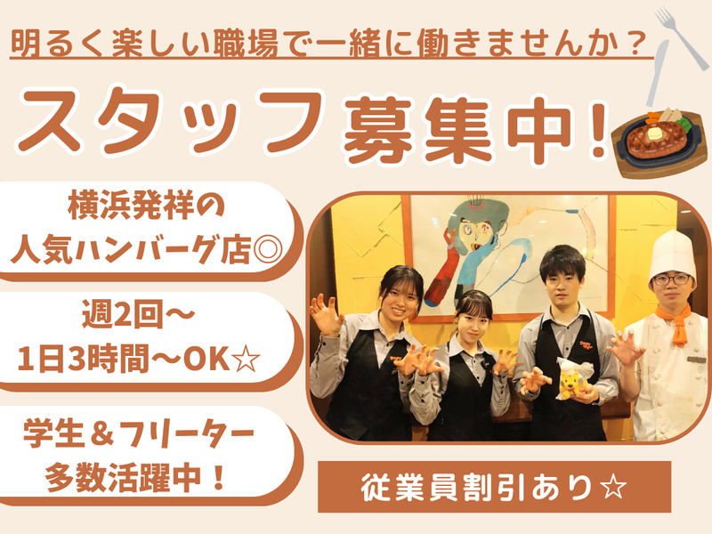 職種/仕事内容 | 仕事内容 =================== 1969年創業!!横浜発祥の人気ハンバーグ店 ハングリータイガーでホールstaff募集! =================== お客様も働くスタッフも「幸せ」に! スタッフを大切にしている環境だから 休日の取りやすさや福利厚生に自信あり♪ ✨車・バイク通勤OK! ✨3ヶ月毎に昇給チャンスあり ✨1食200円の食事補助あり ✨家族も使える従業員割引あり ✨髪色相談ok(派手じゃなければ) :::::::::::::::::: 《仕事内容》 ■お客様のご案内 ■オーダー取り ■テーブルの片付け ■テーブルのセッティング ■レジ業務 など 慣れてきたら… 季節のおすすめメニューや 「今はこんなお肉があるんです!」 など、常連さんとの会話が弾むことも! 将来的にも役に立つ接客スキルを 身につけることができます◎ :::::::::::::::::: │◤ 働きやすさ抜群の職場 ◢│ 急な予定が入っても、 スタッフ同士の話し合いで随時変更可能! お友達との応募もOK! │◤ バイトデビューも安心 ◢│ 最初の40時間は先輩がマンツーマンで研修! 聞いた時は出来ると思っても実際は… なんて困った時もしっかりサポートします! │◤ リーダーも目指せる♪ ◢│ スキルUPでリーダーになれることも! リーダーの証である専用の ネクタイやバッチをGETしましょう! もちろん、手当も出します✨ :::::::::::::::::: ⭐通勤便利なアクセス♪ 上永谷駅、港南台駅、上大岡駅、 屏風浦駅、下永谷駅、舞岡駅 方面からもアクセス便利です♪ |