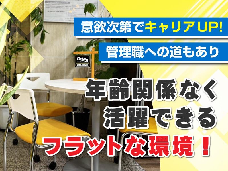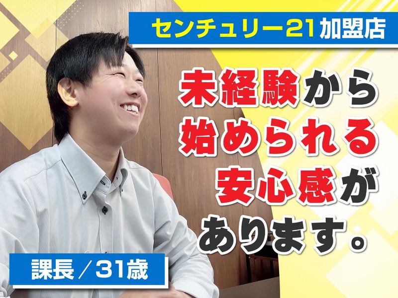 職種/仕事内容 | 仕事内容 ✅未経験者歓迎!営業経験は不問 ✅センチュリー21の加盟店で安心 ✅残業・ノルマなし!週休2日制 …………………………………… アプリやホームページを見てご来店くださったお客様にご希望の物件をご紹介します。 希望条件をヒアリングし、現地まで社用車でご案内! 【具体的には】 - お客様対応・ヒアリング - 物件のご案内 - 契約手続き・退去時の立会い - 管理物件の写真撮影・登録 - 問い合わせ物件の状況確認 など \営業が初めての方も安心!/ 入社後はセンチュリー21で行われる研修からスタート! 不動産業界の基礎知識から、営業のノウハウまでお教えします。 …………………………………… 【スタッフインタビュー】(31歳・課長) Q1.入社動機について  ̄ ̄ ̄ ̄ ̄ ̄ ̄ ̄ ̄ ̄ ̄ ̄ 前職は全くの別業種で働いていましたが、収入面などで将来に不安を覚えるようになり、思い切って転職を決意。 不動産営業を選んだのは、昔から物件チラシを見ることが好きだったからです。 Q2.会社の雰囲気について  ̄ ̄ ̄ ̄ ̄ ̄ ̄ ̄ ̄ ̄ ̄ ̄ ̄ ̄ いわゆる「ノルマ達成」に向けた残業などは一切なし! 目標はありますが、達成だけを考えたギスギスした空間ではなく、周りと相談しながら進めていける環境です。 Q3.この会社で働く理由  ̄ ̄ ̄ ̄ ̄ ̄ ̄ ̄ ̄ ̄ ̄ ̄ ̄ この会社に定着している理由としては、1人ひとりの頑張りをしっかり評価するスタンスが合っていたから。 31歳という年齢で課長職を任せていただけたのも、日頃の姿勢や成長を正当に評価していただけた結果だと思っています。 待遇面も不満はなく、自然と長くいられる環境づくりが完成していると思います。 Q4.仕事終わり・休日の過ごし方について  ̄ ̄ ̄ ̄ ̄ ̄ ̄ ̄ ̄ ̄ ̄ ̄ ̄ ̄ ̄ ̄ ̄ ̄ ̄ ̄ サッカー観戦が好きで、仕事帰りにそのままスタジアムで生試合を楽しむこともありますね。 休日は家族とゆったり過ごす時間にあてています。 Q5.当社の好きなところは?  ̄ ̄ ̄ ̄ ̄ ̄ ̄ ̄ ̄ ̄ ̄ ̄ ̄ ̄ 社員同士が気軽に相談できる雰囲気が好きなところです。 数字に追われすぎず、周りと助け合いながら動ける社風だからこそ、新人の方も気負いせず自分の意見を出しやすいかと思います。 |