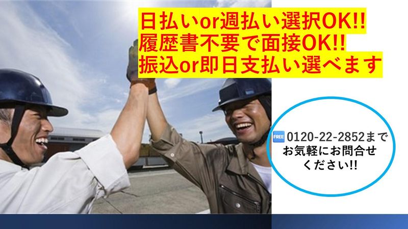 職種/仕事内容 | 仕事内容 現場で職人さんをサポートするお仕事⭐ 無資格・未経験の方も歓迎します! もちろん現場作業経験者も大歓迎! 【具体的には・・・】 ○草刈り ○ゴミ出し ○塗装作業 ○解体作業 ○雑工 ○道具の準備・片付け など。 まずはできることからお任せします。 道具の名前や作業の流れを学ぶことが できるので、「次はこの作業かな」 「こっちを先にやっておこう」と 先回りした仕事ができるように◎ 先輩スタッフがしっかり お教えするのでご安心ください! ★熱中症対策にも力を入れています!★ ■こまめな水分補給 ■休憩場所や休憩時間の確保 ■体調に異変を感じた際の報告ルール ※現場により対策内容に変動あり ✅週1日~OK、シフト自己申告制 シフト自己申告制を導入!しております!! 週1日~週6日、働き方は相談に応じます。 土曜・祝日のみの勤務や Wワークでの勤務もちろんOK!! ワークライフバランス重視派も 収入重視派も希望を教えてください◎ <スタッフインタビュー> ■Sさん(入社2年目/未経験入社) 身体を動かしながら働ける仕事を探して いたところ、幅広い業務に携われるこの 仕事を見つけて応募しました。 先輩が「この道具はこう使うんだよ」 「このあとこの作業があるから」と アドバイスもくれるので安心して働いています! ■Tさん(入社3年目/元解体作業員) 解体現場での経験があったので、 最初から手を動かせる仕事が多く、 スムーズにスタートできました。 自分の得意な作業を活かしながら、 これまでやったことのない仕事にも チャレンジできるので、 技術の幅がどんどん広がっています。 |