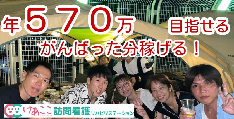 職種/仕事内容 | 仕事の内容 ・頑張った分だけ、稼ぎたい! ・でも、安定した基本給も欲しい! ・今は、家庭と両立してはたらきたいな ・病棟だと、1人1人によりそえない・・ ・訪問リハがやりたくて、療法士になったんだよね ・直行直帰で、ライフワークバランス維持しながら、稼ぎたい ・時間単位の有給とかほしいな ・でも、つながれる仲間達と働きたい! もし、これらの中に1つでも該当することがあって、「今の職場のままじゃ、むくわれない・・」という気持ちがあれば、ご安心ください。 おおげさかもしれませんが、たくさんある求人の中から、このページにアクセスしたことが、あなたの「人生のターニングポイント」になるかもしれません。 逆に言うと、『このまま、貴重な時間を、今の職場で浪費しつづける』という選択は、「あなたの1度きりの療法士人生」にとって、もったいない事なのかもしれません。 ー はじめまして!こんにちは! けあここ訪問看護リハビリステーションの、武市あいです。 うちの事業所は、障がい者グループホームを運営する法人が開設したステーションです。 そのため、「真っ当な精神科訪問看護をしながら、高齢の方へのケアも両立していく。そして、一括で、京都地域の医療福祉に貢献する」といった理念をもっています。 ー それでは、「なぜ、けあここ訪問看護なら、あなたの悩みを解決できるのか?」について、1つ1つ、ご説明させていただきます。 ちなみに、うちは、「仕事を探している方の人生の選択がかかわっているからこそ、しっかりと情報開示する」というスタンスです。 なので、こちらの求人も、だいぶ長文になっています。 てすので、ひとまず、こちらの求人を「お気に入り登録」いただいて、じっくり、お読みいただければと思います。 ー 【がんばった分・稼げる・年収570万水準めざせる】 けあここ訪問看護は、「がんばった人が、報われる職場」を目指しています。 ですので、例えば、以下のような「賞」「インセンティブ」を設け、「賞与」として、「がんばった人」に支給しています。 ー ・訪問インセンティブ:月間訪問時間が 81時間を超えた分について- 1時間あたり2,000〜3,000円ー訪問のみの方〜地域活動やDM訪問など積極的な方:2000〜3,000円(評価制度により判断) ・地域連携インセンティブ:連携件数に応じて- 1件あたり15,000円 ※利用者のいない依頼元からのご依頼で、新規利用者さんが3ヶ月以上継続利用となった場合に支給します。 ・助っ人賞:他のスタッフの代わりに出勤してくれた方に(一番多く「代打勤務」に入ってくれた方)、支給します。 ー なお、上記の「賞与」の詳細は、下部の「募集要項」をご覧ください。 そして、「がんばった分稼げる!賞与」の結果として、例えば、「私は、しっかり稼ぎたい!」なんていう方は、「毎日しっかり平均6件以上の訪問をこなし、年収ベースで570万円くらいを目指す」なんて事も可能です。 ちなみに、「私は、家庭もあるから、今は、ゆったりペースで、働きたいかな」というのも、全然OK! そういった方は、「1日4,5件程度の訪問を維持していただき、年収420万円から500万円くらい」を稼ぎ、ご自身のペースで、無理なく家庭と仕事を両立していただければと思います。 このように、けあここ訪問看護は、「がんばってガッツリ働きたい方」「家庭と両立して、働きたいか」どちらにもフィットする職場だと思いますよ! ー 【さらに、安定の基本給】 けあここ訪問看護の、基本給は「35万円」。 これは、京都の訪問看護の中では、高水準だと思います。 ちなみに、この背景としては、「物価高だからこそ、メンバーには安心して働い欲しい」という考え方があります。 そして、この基本給に、「がんばった分だけ、賞与」がのってきます。 ですので、「安定の基本給」をもらいながら、「がんばって、更なる高給を目指す」という事が可能となっています。 ちなみに、「訪問未経験、精神科未経験等」で、同行が必要な「一人立ち準備期間」の間は、時給2000円換算となりますが、「やってみて、自分的にいける!」となり、管理者のOKが出次第、即35万へ移行します。 実際、「20代、訪問経験なし、看護実務の経験がほぼ無い方」も、3カ月目から、一人立ち給料となっています(実力によります。なので、訪問経験者の方でも、同行が必要な期間中は時給2000円換算となります。)。 ー 【直行直帰OK】 けあここ訪問看護では、「効率的に働き、利用者さんにお役立ちしながら、メンバーの生活も大事にする」といった考え方をしています。 そのため、「直行直帰」をとりいれています。 ですので、「家庭と両立しながら、訪問看護で働きたい!」という方にとっては、良い環境が整っていると思います。 ー 【時間単位で有給OK】 「子どもの授業参観があるから、2時間だけぬけたい」 「その日は、夜に、遠いところで用事があるから、1時間だけ早く帰りたい」 「訪問の空き枠がある日があるから、少し休