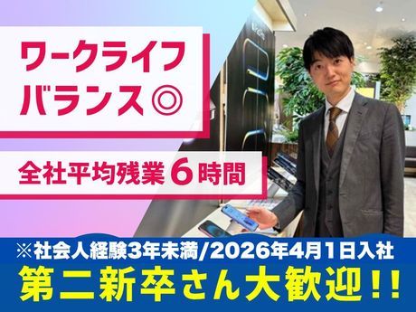 対象となる方 | 資格 ◎未経験歓迎 ◎第二新卒歓迎 ※短大・四年生大学卒業見込みの方も応募可 【必須スキル】 ・2026年4月1日入社可能な方 ※勤務開始日について別途ご相談可能です。 ・専門卒、短大卒以上 ・27歳以下 (長期勤続による若年層のキャリア形成を図るため。※例外事由 3号イ) 【こんな方歓迎】 ・お客様に寄り添った仕事がしたい ・ワークライフバランスを整えたい など 2026年4月1日入社の第二新卒の方も現在活躍中です! 年齢の条件と理由:例外事由3号のイ・28歳未満(長期勤続によるキャリア形成のため) |