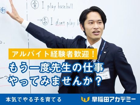 職種/仕事内容 | 仕事内容 \タイパ重視の30分!/ ================== オンライン職種説明会 開催中 ================== カメラオフ・マイクオフでの参加OK 説明会後の選考勧誘などは一切なし まずはお気軽にご参加ください◎ - ◇毎月 第2・第4 月曜日 11:00~11:30 ◇Zoom実施(予約不要) 【ミーティングID】 310-565-6773 ※パスワード不要 ※実施時間以外の接続はお控えください - ■本気で向き合う。合格にとことんこだわる。 塾業界で一つ上のステージへ進みませんか? ◆圧倒的な合格実績 ◆塾講師経験者を続々と採用中 ◆事務との分業で教務に専念 ◆年3回長期休暇あり 【塾講師経験者を続々と採用中】 「本気でやる子を育てる」 これが、早稲田アカデミーが掲げる 変わらない教育理念です。 私たちが採用時重視していることは これまでの経験やスキルはもちろん、 この理念に共感し、生徒たちの “志望校合格”に本気で向き合い、 こだわっていただけそうかどうか。 逆に言えば、 大手や進学塾出身でなかったとしても こうしたマインドや熱意を持つ方なら 一緒に働きたいと強く思っています。 地方の小さな学習塾から よりレベルの高い環境を求めてきた方。 より多くの生徒を難関校合格に導きたいと、 次のステップとして転職された方。 自分の実力を、想いを、 教育の最高峰といえるステージで試したい。 そんな熱意ある方が集まっています。 実績ある経験者の方でも 合格に本気でこだわる大切さや 楽しさに気付けていない方がほとんど。 ポスティングや勧誘電話などの営業活動はなく、 授業と生徒・保護者対応に専念できます。 「早稲田アカデミーで初めて 塾講師の本当のやりがいを知った」 そんな声も聞こえています。 ぜひ当社で視座を高め 違う景色を見てみませんか? 本気の想いは実績にも表れ、 ・中学/御三家中の合格実績610名と当社史上最高数を更新 ・高校/早慶付属高校の合格者数実績1668名で25年連続全国No.1達成 ・大学/競争率3倍(合格率33%)の東京大学への合格率66.4% など圧倒的な実績を記録し 去年3月期には過去最高益の 売上高328億円を突破しました。 教育に専念できる環境をご用意します。 ぜひ経験を発揮してください。 ■校舎講師として難関中学・高校・大学を希望する生徒の指導をお任せします 校舎講師として、難関中学・高校・大学を希望する 集団授業または個別指導(中学・高校受験部門の各ブランド・大学受験部門)を担当。 ※事務職と分業制のため事務・電話応対等はほとんどありません 【具体的な仕事内容】 ・授業 ・進路相談等の生徒・保護者対応 ・授業前後の生徒対応 ・問合せ対応(教務的な内容への回答) ・保護者との定期的な情報交換・アドバイス等 【指導科目紹介】 基本カリキュラムや指導案も完備していますが、裁量による工夫も可能。 生徒たちの合格を目指し最善の策を考え授業を組み立てます。 <中学・高校受験部門> 小学生は算国理社の4教科、中学生は英数国理社の5教科が指導科目ですが、 この中から2~4教科ご担当いただきます。 <大学受験部門> 原則73教科担任制 【選べるキャリアプラン】 校舎で経験を積んだのち、選べるキャリアプランを用意しております。 ▼校長(管理職)▼ 少量の授業を担当しながら 売上・職員管理、時間割作成、集客等、校舎の運営や支援。 「校長」として講師や生徒・保護者との折衝もあり 自身の力で校舎を大きくできるやりがいがあります。 ▼専門職▼ 問題作成やカリキュラム、指導マニュアル、特別講習の作成等 科目のエキスパートとして受験合格をサポート。 難関校専門のクラスを担当することも可能。 「主査→上席→主席」といったキャリアプランをご用意。 ▼本部▼ 適材適所を考え、人事・総務や経営部門等への道もあり。 講師では得ることが難しい、貴重な経験が手に入ります。 \\塾講師の魅力・やりがいこちら// https://www.honkoe.com/ 「塾講師という職業」の魅力を紹介するWEBサイトの 制作に当社が全面協力をいたしました。 当社の社員の働き方ややりがい、 インタビューも掲載されておりますので、 ぜひご応募前にご覧ください。 |