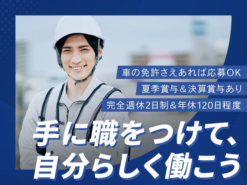 対象となる方 | 必要資格・経験 《必須》 ・普通自動車免許(AT限定可) 《歓迎》 ・現場作業の実務経験がある方 ※18歳未満の方は22時までの勤務となります。 |