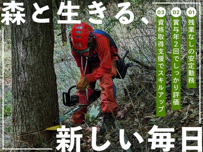 職種/仕事内容 | 仕事内容 +++++++++++++++++++++++++ 岩手の財産である美しい森林を 安定した環境で一緒に守りませんか? +++++++++++++++++++++++++ 〇●~働きやすさのポイント~●〇 ✅OJT研修で未経験者も安心 ✅資格取得支援で手に職つく ✅賞与年2回、さらに決算賞与あり ✅社員のほとんどが有給100%消化 ✅実働7.5時間、16時終わり ✅残業ほぼなし 【主な仕事内容】 ▽購入した立木を伐採・搬出して、 製材所やバイオマス発電所、 合板工場などへ供給する業務 ▽国有林の成長を促しながら 健全な森に育てるための間伐作業 【具体的な作業工程】 ・木を搬出するための作業道開設作業 ・チェーンソーを使用しての伐倒作業 ・重機で伐った木を集める集材作業 ・運搬車で林道まで木を運び出す運材作業 【未経験の方】 ワイヤーを引っ張って木に巻き付けて 合図をするなどの補助作業から開始! 同時にチェーンソーや 重機オペレーターなどの資格も 会社負担で取得いただきます! ※講習など出勤扱い・かかる費用も会社負担◎ 資格が取れたら順次できることを 増やしていただきます! |