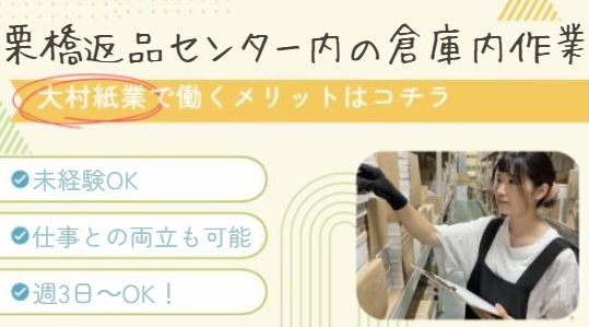 勤務地 | 大村紙業株式会社 栗橋返品センター 349-1103埼玉県久喜市栗橋東6-18-7 |