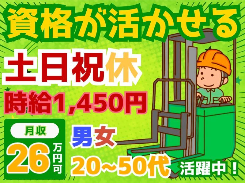 対象となる方 | 求めている人材 \あなたの経験と資格が、今求められています!/ 新築の大型物流倉庫で、リーチフォークリフトを使った入出荷作業をお任せします。 今回の募集では、フォークリフト業務の実務経験をお持ちの方を特に歓迎・優遇しています! 「資格は持っているけど、しばらくブランクがある…」 「今まで経験した倉庫とは違う環境で働いてみたい」 「安定した収入を得たい」 そんな方でも大歓迎です。 この求人は、“経験”や“実績”をきちんと評価し、頑張りが待遇にしっかり反映される現場。 あなたのこれまでの現場経験や培ってきたスキルを、存分に活かして活躍できます! ▼応募条件 ● フォークリフト運転技能講習修了証をお持ちの方 ● 実務経験がある方優遇(年数不問) ● リーチフォークリフト操作経験者、尚歓迎! ※学歴・職歴・年齢・性別は問いません。 ※20代~50代まで幅広く活躍中!ブランクがある方もまずはご相談ください。 ▼こんな方にぜひ来てほしい! ● フォークリフト資格を活かしたい方 →「せっかく取得した資格を無駄にしたくない」そんな思いに応える職場です。 → 資格保有者が力を発揮できるポジションが豊富に用意されています。 ● フォークリフト作業の実務経験を活かしたい方 → これまでの経験年数にかかわらず、即戦力として活躍できる現場です。 → 他業界での物流経験も歓迎!経験があるからこそ分かる“動きやすい現場”です。 ● しっかり稼ぎたい方 → 高時給1450円スタート!残業時は1813円としっかり上乗せされます。 → 月収25万円以上も可能なため、生活の安定にも直結します。 ● 黙々と作業するのが得意な方 → 1人作業が多く、自分のペースで集中できる環境です。 → チームでフォローし合える体制もあるので、質問や相談もしやすいです。 ● 安定した環境で長く働きたい方 → 完全週休2日制(土日祝)で休日しっかり!長期休暇もあり働きやすさ抜群。 → 新築のきれいな物流センターで、長く安心して働けます。 ● 職場の雰囲気も大切にしたい方 → 優しい先輩スタッフがしっかりサポートします。新しい職場でも安心してスタートできます。 → 人間関係の良さ、現場の雰囲気の良さを重視したい方にこそ合う職場です。 ▼ブランクがあっても大丈夫! 「前職から少し間が空いている…」 「育児や介護で現場を離れていた…」 そんな方もご安心ください。 現場にはフォロー体制が整っており、初日は周囲の先輩がついて丁寧にサポートします。 無理なく現場感覚を取り戻せるよう、慣れるまで丁寧に教えます。 焦らず、自分のペースで一歩ずつ再スタートしていける環境です。 ▼キャリアチェンジ・再挑戦にも最適! 物流現場の経験はあるけれど、 「そろそろ安定した勤務先で腰を据えて働きたい」 「毎日バラバラの現場より、決まった勤務地で働きたい」 という方にも最適! このお仕事は、固定勤務地×フルタイム勤務×土日祝休みという条件が揃っており、 派遣でも正社員並みの安定感を実現できます。 「年齢的に新しいことを始めるのは不安…」という方でも、 経験があればすぐに力を発揮できる環境があります。 ▼こんな志向の方にもマッチします! ● コツコツと正確な作業を得意とする方 ● 決まった作業を丁寧に進めることが好きな方 ● チームよりも個人プレーが向いていると感じる方 ● 効率よく働いて、余暇をしっかり確保したい方 ● 自分のペースで安定的に稼ぎたい方 ▼選考時に重視していること ● 今までの経験・スキルをどのように活かせるか ● 長期的に安定して就業できるか ● 安全に業務を遂行する意識を持っているか 面接は堅苦しくなく、あなたの“これまで”と“これから”について気軽にお話しいただければOKです。 職場見学も実施しているので、現場の雰囲気や作業内容を見たうえで入社を判断できます。 ▼勤務スタイル・働き方のイメージ ● 毎日同じ時間に働けるので、生活リズムが整います ● 土日祝休みで、予定が立てやすい ● 年末年始・GW・夏季休暇など、長期連休も充実 ● フルタイム勤務でしっかり収入を確保 ● 月25万円以上の安定収入を目指せます ▼最後にひとこと 「安定した環境で、資格や経験を活かして働きたい」 「自分のペースで、無理なく長く働ける職場を探している」 「フォークリフトの仕事に、もう一度挑戦してみたい」 そんな思いをお持ちのあなた! この新築物流センターで、あなたの力をぜひ発揮してください♪ 経験者が「ここなら安心して働ける」と感じられる環境を整えています♪ 私たちはあなたのご応募を、心よりお待ちしています! |