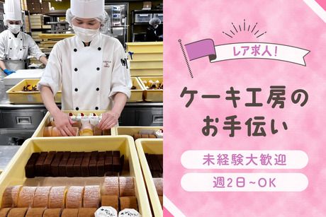 対象となる方 | 資格 <必要資格・スキル> ・一切不問! 調理や包丁を持った経験がなくても はじめられます♪ 将来パティシエを目指している専門学生さんも、 子育てがひと段落した主婦(夫)さんも大歓迎◎ 「久しぶりのお仕事で不安…」という方でも、 先輩スタッフが優しくサポートします! ・お菓子作りが好き! ・学校や家庭と両立したい ・久しぶりに働きたい(ブランクOK/職場復帰応援★) ・将来ケーキ屋さんやパティシエになりたい ・少しだけお小遣いを稼ぎたい |