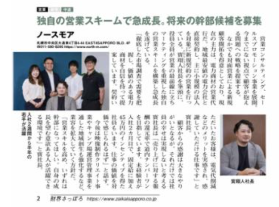 職種/仕事内容 | 仕事内容 \\\ ✨この求人のポイント✨ ///  ̄ ̄ ̄ ̄ ̄ ̄ ̄ ̄ ̄ ̄ ̄ ̄ ̄ ̄ ̄ ̄ ̄ ̄ ̄ ̄ ✅朝ゆっくり11時出勤で 自分のペースで働けます ✅マイカーで効率よく訪問先を回れます! ✅覚える事はシンプル!未経験でも安心◎ ✅平日休みも取得可能! プライベートも充実できます◎ ✅インセンティブ最大10万円! 頑張り次第で収入アップ✨ ✅マイカー手当あり! ⏩お仕事内容  ̄ ̄ ̄ ̄ ̄ ̄ ̄ ̄ ̄ ̄ ̄ ̄ ̄ ̄ ̄ ̄ ̄ ̄ ̄ ̄ マイカーで一般家庭を訪問し、 新電力の料金プラン をご案内するお仕事です。 ※ガソリン代全額会社負担になります。 ⏩具体的な仕事内容  ̄ ̄ ̄ ̄ ̄ ̄ ̄ ̄ ̄ ̄ ̄ ̄ ̄ ̄ ̄ ̄ ̄ ̄ ̄ ̄ 担当エリアのご家庭を訪問し、 新電力の料金プランについてご説明します。 「今よりも電気代が安くなりますよ」と ご案内するだけのシンプルな業務です。 難しい説明や契約手続きは一切なく、 マニュアルも完備しているので 未経験の方でも安心してスタートできます! マイカーで移動するため、 効率よく訪問先を回ることが可能です◎ ⏩ノースモア株式会社について  ̄ ̄ ̄ ̄ ̄ ̄ ̄ ̄ ̄ ̄ ̄ ̄ ̄ ̄ ̄ ̄ ̄ ̄ ̄ ̄ 当社は「お客様の暮らしをより豊かに、 より経済的に」という思いのもと、 一般家庭を中心に新電力の料金プランを ご案内するサービスを提供しています。 事業拡大に伴い、9月中旬から新たに 契約社員として訪問営業スタッフを 募集することになりました。 特に9月中に勤務可能な方を優先的に 採用いたします。 |
