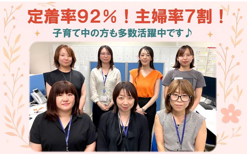 職場環境・雰囲気 | 職場環境 \小さなお子さんがいる主婦の方も多数活躍中/ 20代~40代の幅広い世代が活躍中。 主婦(夫)の方や大学生など様々な方が在籍しています。 未経験の方、ブランクがある方も安心してご応募ください♪ ■女性比率:約70% ■定着率:92% (60歳定年制度有) 喫煙所:なし(敷地内全て禁煙) |