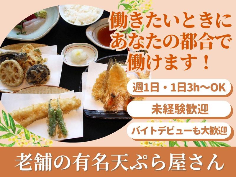 職種/仕事内容 | 仕事内容 ――― ⋆⋅☆⋅⋆ ――― ⋆⋅☆⋅⋆ ――― ✨求人のポイント✨ ⛅週1日~OK!学業と無理なく両立◎ ⛅土曜勤務できる方、積極採用! ⛅清潔感があれば髪型・髪色も自由☆ ⛅未経験OK!バイトデビューも応援♪ ⛅選べる働き方「短期から」「長期安定」 ⛅面接時は履歴書不要! ――― ⋆⋅☆⋅⋆ ――― ⋆⋅☆⋅⋆ ――― ✨雰囲気◎5~6人の業務体制で 先輩スタッフが優しくサポート♪ グルメサイトで高評価!『天ぷら船橋屋』 老舗天ぷら店でありつつも 親しみやすい接客と 上品な食事の数々が人気の秘密♪ ――― ⋆⋅☆⋅⋆ ――― ⋆⋅☆⋅⋆ ――― ✅お仕事内容  ̄ ̄ ̄ ̄ ̄ ̄ ̄ ⏩ご来店頂いたお客様のご案内 ⏩注文の受付 ⏩オーダーを調理場に伝え、 出来上がったらお客様に配膳 ⏩片付け などホール業務をお任せします! 未経験・バイトデビューも応援! シンプルな作業でスグ覚えられます◎ 初めての方も、仕事の流れなど イチから教えますので心配いりません! 上品なお客様も多いので、 慌てずにゆっくり覚えれば大丈夫♪ 〃=〃=〃=〃=〃=〃=〃=〃=〃=〃= ✅シフトサイクルは2週間ごと!  ̄ ̄ ̄ ̄ ̄ ̄ ̄ ̄ ̄ ̄ ̄ ̄ ̄ ̄ ̄ ̄ 「来週は旅行したいからお休みを!」 「テスト週間なのでお休みを…」 など、事前に仰ってもらえれば シフトはちゃんと融通を利かせます! シフトサイクルが2週間ごとなので 事前に予定を組むことが出来ます♪ 勤務時間や勤務日数は気軽に相談OK! 多めにシフト入れる方は大歓迎! フルタイムで働きたい方もぜひ! また、副業としてミニマムシフトを 組みたい方もぜひご応募ください◎ 〃=〃=〃=〃=〃=〃=〃=〃=〃=〃= ✅アクセスも抜群◎⭐  ̄ ̄ ̄ ̄ ̄ ̄ ̄ ̄ ̄ ̄ ̄ ̄ ̄ ̄ ̄ ̄ ̄ ̄ 新宿駅から徒歩2分から 新宿三丁目駅から徒歩1分の駅チカです! 店舗の近くには 大型ショッピングモールがありますので お仕事前後でのお買い物なども 楽しめちゃいます♪ 〃=〃=〃=〃=〃=〃=〃=〃=〃=〃= ✅上質な客層で落ち着いて接客ができる  ̄ ̄ ̄ ̄ ̄ ̄ ̄ ̄ ̄ ̄ ̄ ̄ ̄ ̄ ̄ ̄ ̄ ̄ 丁寧にオーダーしてくれるお客様が多く 未経験の方も焦らずに 少しずつ業務を身に付けていけます。 そういった面で、 接客業や飲食業が初めての方も 最初の一歩としてオススメできます♬ もちろん、業務を通じて 「正しい言葉遣い」をはじめ、 "おもてなしの心"までしっかり学べるため 接客スキルを身に付けられるのも◎ 〃=〃=〃=〃=〃=〃=〃=〃=〃=〃= |