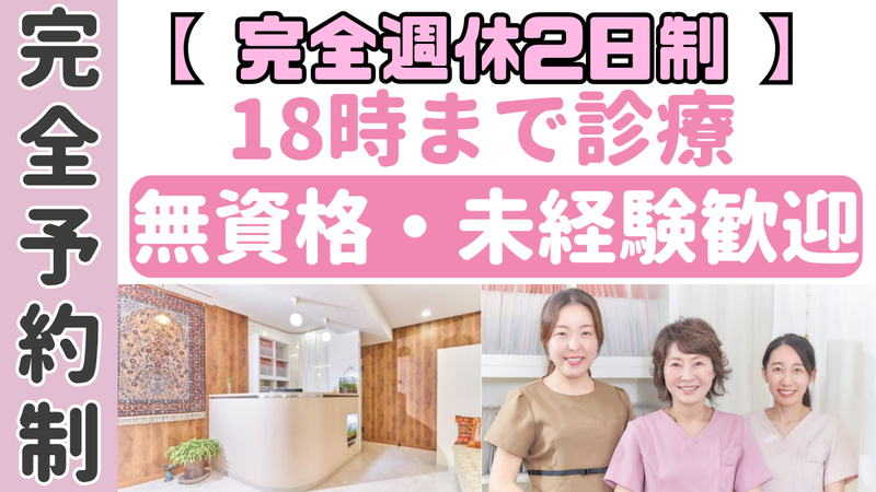 職種/仕事内容 | 仕事内容 【完全予約制の余裕のある診療⋆。˚✩】 個人医院ならではの働きやすさ* 未経験・無資格の方こそ大歓迎です♪ 〈完全週休2日制〉お休みもしっかり! ୨୧┈┈┈┈┈┈┈┈┈┈┈┈┈┈┈┈┈୨୧ ✅ 残業ほぼなし 18:00定時(金曜19:00)なので 仕事終わりの予定もたてやすい♫ ୨୧┈┈┈┈┈┈┈┈┈┈┈┈┈┈┈┈┈୨୧ ✅ 完全予約制 バタバタしないゆったりとした雰囲気♬ ୨୧┈┈┈┈┈┈┈┈┈┈┈┈┈┈┈┈┈୨୧ ✅ 未経験を積極採用中 特別な資格や経験が必要ありません♪ ୨୧┈┈┈┈┈┈┈┈┈┈┈┈┈┈┈┈┈୨୧ ✅ 完全週休2日制 木・日・祝日のお休みもしっかり◎ ୨୧┈┈┈┈┈┈┈┈┈┈┈┈┈┈┈┈┈୨୧ *★⸜初歯科医院にぴったり⸝★* 当院は完全予約制で少数の患者様に対応!  ̄ ̄V ̄ ̄ ̄ ̄ ̄ ̄ ̄ ̄ ̄ ̄ ̄ ̄ ̄✿* ̄ ̄ バタバタすることもなく、 ひとりひとりの患者様に余裕を持って 向き合える診療が魅力です✨ ゆったりとした雰囲気の医院なので、 「忙しそうで質問できない…」 なんてことはありません◎ 先輩も周りも丁寧に教えますし、 分からないことはフォローします♬ ・受付 ・診療サポート ・治療器具の管理、準備、消毒 など 歯科助手業務全般を中心に、 歯科医院のサポート業務をお任せします! 未経験からの歯科業界デビューには 「タウン歯科」がお勧めです✨ |