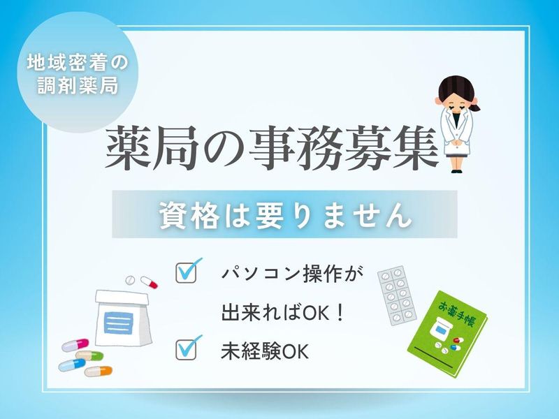 職種/仕事内容 | 仕事内容 ✨週2日~OK ✨業界未経験、 事務未経験OK 地元に密着した調剤薬局の 事務のお仕事。 【具体的には…】 ✅患者さんの受付対応 ✅電話対応 ✅書類作成 ✅PC入力 など事務業務全般を お願いします! 「ブランクがある…」 「経験が浅くて心配…」 という方も先輩スタッフが サポートするので安心して下さい◎ |