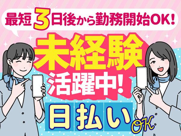 職種/仕事内容 | 仕事内容 .。.:・゚+.。.:・゚+.。.:・゚+ 未経験大歓迎! スマホが使えればOK! 誰でも簡単お仕事◎ .。.:・゚+.。.:・゚+.。.:・゚+ \働くうえでのポイント/ ✅日払い・即日勤務OK ✅ノルマなしで安心! ✅応募時、履歴書不要! ✅交通費もしっかり支給 ✅楽しい社内イベント有 【 お任せする仕事例 】 ・・・・・・・・・・・・・・・・・・ ・スマホショップや家電屋のイベント運営 ・各種家電製品やサービスのご紹介 ・購入いただいた製品のアフターフォロー など初心者の方でも安心できる簡単な内容です。 実際にほとんどのスタッフが未経験からスタート! 分からないことはマニュアルを見るか 社員にパスすればOK! ・・・・・・・・・・・・・・・・・・ 〇●お客様と楽しく会話♪接客スキルもUP! 「笑顔で接客」 「分かりやすく伝える」 お仕事を通して 社会で武器になるスキルが 自然と身につきます♪ *…*…*…*…*…* 〇●働きやすさのワケ ✨屋内100%で寒さの心配なし! ✨シフトは固定なし! ✨働き方も充実します♪ ✨未経験でも安心環境 |