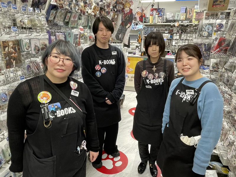 職種/仕事内容 | 仕事内容 +・―――――――――――――――――― 「K-BOOSなんば壱番館」の正社員募集! アニメ・ゲーム・VTuberなどの SHOPでのお仕事☆ ――――――――――――――――――・+ 「K-BOOKSなんば壱番館」にて、 正社員スタッフ大募集! 販売・買取・接客業務をお任せします! <<お仕事について>> ・レジ業務 ・袋詰め ・品出し ・その他付随業務 ※担当商品の買取業務必須 (知識を深めていただくために毎月社内試験あり) <<おすすめポイント>> ★アニメ・ゲーム・VTuberグッズに 囲まれてのお仕事になります! ★しっかり丁寧に作業を教えるので、 未経験でも安心です! ★同じ趣味の方がたくさん働いているので、 スタッフ同士の距離が近く、 楽しく働けますよ◎ |