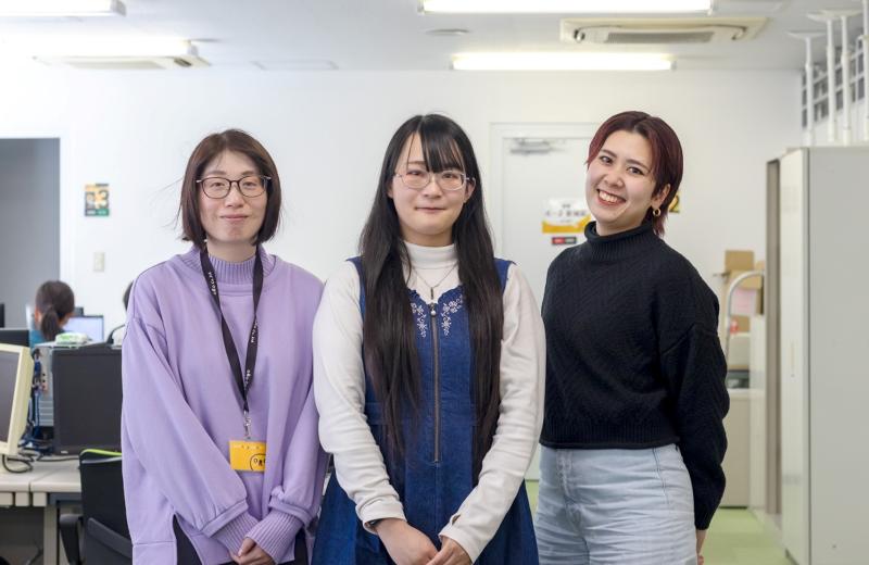 職種/仕事内容 | 仕事内容: 仕事内容は見積書・請求書の作成、営業担当が取得した注文書の社内処理、請求業務などです。また、自動化ツールを使用して業務効率化の推進や業務フローの見直しなどもおこなっています。営業スタッフは東京・大阪で勤務しているため、チャットや内線でコミュニケーションを取りながら業務をおこなっています。 横山さん・桑水流さんは会社のスピード感に初めは驚いたと話します。「初めはスピード感の速さに驚き、ついていけるか不安になりましたが、先輩たちから丁寧に業務を教えてもらえたり、マニュアルを見たりして、徐々に慣れていきました。新人さんはまずはZACに慣れてもらい、状況をみて簡単な業務から任せていきます。」 2021年2月に子育てサポート企業の証である「くるみん」の認定を受けました。オロ宮崎では女性の育児休業取得率100%達成、子の看護休暇や育児のための残業免除などを小学6年生まで対象拡大するなど、多様な働き方の整備に努めています。今回も産休・育休取得に伴う募集であり、長く活躍できる環境を作っています。 |