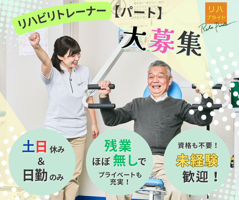職種/仕事内容 | 仕事内容 【✨2025年10月 NEW OPEN!✨】 “介護っぽくない”介護始めませんか? 「介護って大変そう…」 ―――そんなイメージを変える、 入浴・食事介助なし! 半日型のリハビリデイサービス♪ ご利用者様の“できる”を引き出す サポートがメインのお仕事です。 ┏━━━━━━━━━━━━━┓ うれしい条件そろってます♪ ┗━━v━━━━━━━━━━┛ ⭐土日休み&日勤のみ♪ 平日だけ&日中のお仕事なので、 自分時間もしっかり確保できます◎ ⭐週2日~・1日4時間~OK! 午前だけ・午後だけの勤務も大歓迎♪ スキマ時間を活かして働けます! ⭐残業ほぼなし♪ 業務は時間通りに進むから、 毎日気持ちよく退勤できます◎ ⭐生活に役立つ知識が身につく♪ 介護や健康に関する知識が自然と学べて、 家族や自分のケアにも役立ちます! ─*─*─*─*─*─*─*─*─*─ ◇◆◇ 仕事内容 ◇◆◇ ✅リハビリマシンの準備・操作補助 ✅トレーニング中の見守り・サポート ✅タブレットでの記録入力 ✅ご利用者様の送迎(運転あり) ✅その他、施設内でのサポート業務全般 \\ マシン操作は丁寧な研修あり♪ // 未経験の方も安心して始められます✨✨ 『運動が好き』『人と関わることが好き』 そんなあなたにピッタリのお仕事です! ┈┈┈┈┈┈┈┈┈┈┈┈┈┈┈ < 1日の流れ(午前/午後)> ┈┈┈┈┈┈┈┈┈┈┈┈┈┈┈ ■~9:00(~13:30)|送迎・準備 ご自宅へお迎え、マシン準備など ■9:00~(13:30~)|バイタル・受け入れ ドリンク提供、連絡帳確認、体調チェック ■9:30~(14:00~)|体操・朝礼 ラジオ体操や発声でウォーミングアップ ■10:00~(14:30~)|リハビリ対応 マシン指導・見守り・移動介助 ■11:15~(15:45~)|バイタル・記録 水分補給、連絡帳・来所日確認 ■11:50~(16:20~)|整理体操 座って太極拳、帰り支度 ■12:15~(16:45~)|送迎・片付け ご自宅へ送迎、清掃・記録業務 ─*─*─*─*─*─*─*─*─*─ 全国約200店舗以上展開中の リハプライド加盟店だから安心♪ 「私にできるかな…」 ―――そんな不安も大歓迎⭐ 新しい施設を一緒に育てていける 仲間として、あなたのご応募を 心よりお待ちしています! |