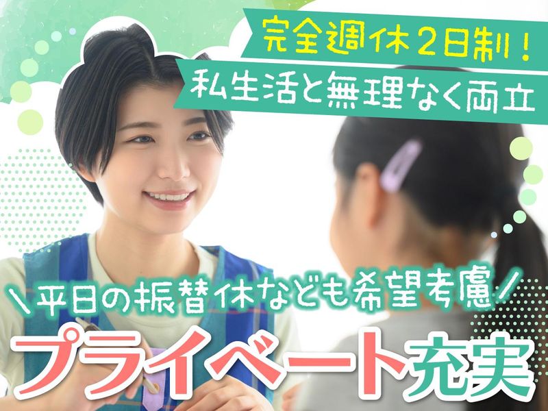 職場環境・雰囲気 | 職場環境 40代・50代・60代活躍中です! 「働きやすさ」と「人間関係」にこだわっている施設だから、スタッフも親しみやすい人ばかり◎ ブランクが不安な方も安心です。 子どもたちが学校時間外でも、楽しくのびのびと過ごせる環境を一緒につくっていきましょう! 喫煙所:なし(敷地内全て禁煙) |