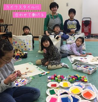 職種/仕事内容 | 仕事内容 ◆カワイが運営する絵画造形教室◆ ピアノレッスンでおなじみのカワイが運営する絵画造形教室です。 保育園児・幼稚園児~小学生が対象。 園や学校が終わった後の時間に 画用紙・ねんど・クレヨンなどの道具を使ってレッスンをします。 まずはアシスタントからのスタートなので未経験からでも安心! 慣れてきたらアシスタントからメイン講師としてご活躍いただけます。 教室は市内の教室や近隣エリアの保育園・幼稚園 教室は蟹江市内の他 通える範囲内のエリアの教室、保育園や幼稚園です。 教室まで直行直帰OK! 年間のレッスン日が決まっているので、 それに合わせて固定シフトを組んでいきます。 空いた時間で勤務OK! ◆子どもとのコミュニケーションを大切に◆ 「作る・描く」プロセスを重視し、 子どもとのコミュニケーションを大切にして 子どもが表現したいメッセージを受けとめます。 様々な木材や特大の画用紙など、 家庭では体験することが難しい素材を用意し、 自由な創作活動ができる環境を提供します。 ◆働くママさんスタッフも活躍中◆ 週1日や2日など家事と両立して働くママさんスタッフも活躍しています! 好きを仕事にできるチャンス★ 子どもが好きな方大歓迎! 絵画造形・美術専攻や 保育・幼児教育・初等教育系の学校を卒業の方 上記同程度の実力を有している方歓迎! Wワーク・ブランクのある方でもOK! 経験を活かして働けます! 働き方はご相談ください |