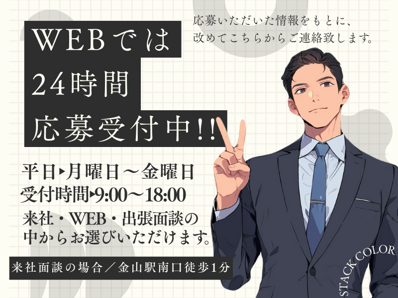 待遇・福利厚生 | 【保険制度】 雇用保険、労災保険、健康保険、厚生年金 【福利厚生】 待遇・福利厚生 【福利厚生】 ■自動車・バイク・自転車通勤OK ■交通費支給(規定あり) お急ぎの方はこちらにお電話ください! ▶090-3421-9375(担当携帯)※応募者専用ダイヤル SMSでの問い合わせもOKです◎ |