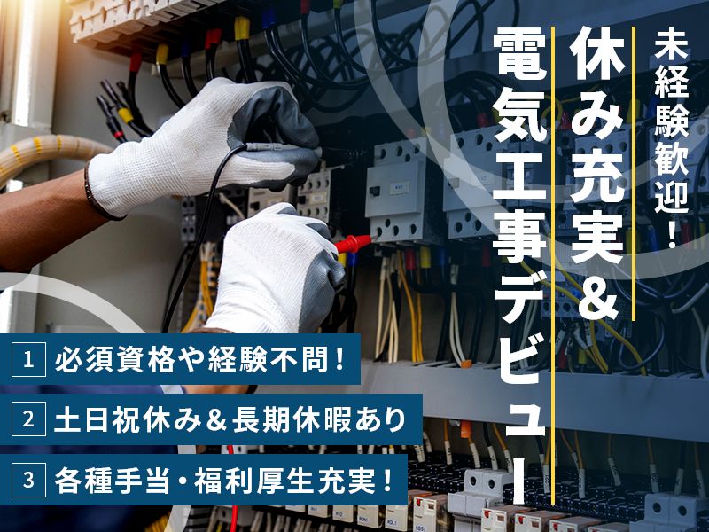 対象となる方 | 必要資格・経験 \\必須資格は特になし// <歓迎> ・普通自動車免許(AT) ・電気工事士の経験がある ・第2種電気工事など現場で活用出来る資格がある ・20代~30代の若手活躍中 〇学歴不問 〇経験者歓迎 〇ブランクOK 〇有資格者歓迎 〇フリーター歓迎 〇新卒 〇第二新卒歓迎 〇U・Iターン歓迎 〇40代以上応募可 |