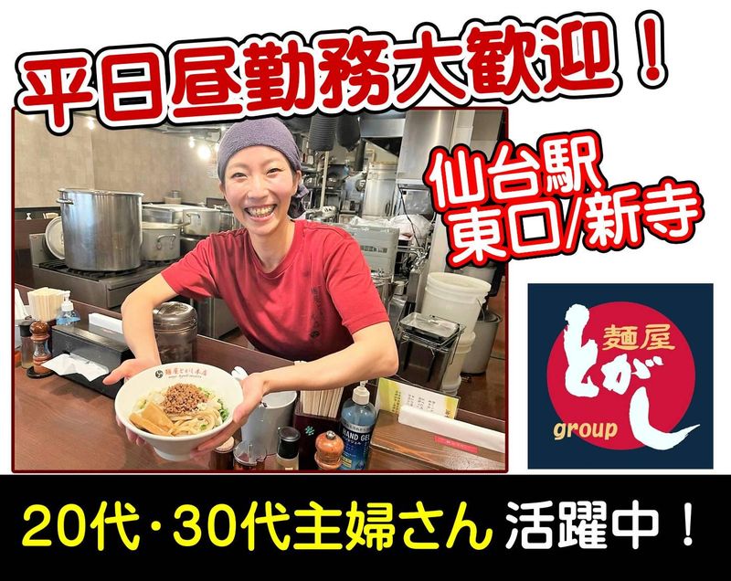 勤務地 | 麺屋とがし 本店 984-0051宮城県仙台市若林区新寺2丁目1−1サンシャイン菊平ビル1F 勤務地 ◆交通費規定支給 ◆車・バイク通勤OK(無料P有) |