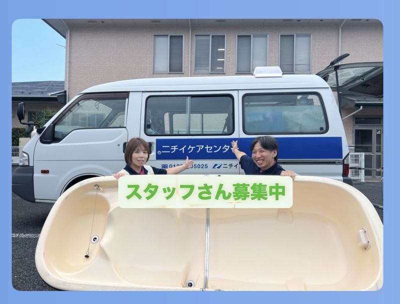 職場環境・雰囲気 | 【Point オススメポイント】 訪問入浴は、3人体制で行うお仕事です。 十分な研修期間を設けていますのでサポート体制も万全です!!経験がない方、ブランクがある方、 自分の時間を大切にしながら働きたい方大歓迎!! 中高年、活躍中! 国籍問いません! 利用者様、ご家族様からの「ありがとう」の言葉と笑顔をいただける、やりがいのあるお仕事です。 ★【新設】サポート休暇:入社6ヵ月未満の従業員に最大6日付与(規定有り) 【Message 採用担当者より】 訪問入浴は、居室内で浴槽をセットし、入浴介助をするお仕事です。 看護師、ヘルパー、オペレーターの3人で行います。 お風呂に入れる喜びを感じていただき清潔を保つことで、健康促進が出来るようお手伝いをしています。 私たちと一緒に沢山のご利用者様を笑顔にしていきましょう!! |