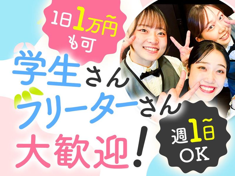 職種/仕事内容 | 仕事内容 \\色んな“働きやすさ”いっぱい// ★平日のみ or 土日のみOK ★週1日~・4h~OK ★働き方や頑張りに応じて評価・昇給あり ★日払い/週払い/前払い対応! ★定期ありも交通費全額支給 ★1日で1万円以上稼ぐことも可能!★ ⇒土・日は通しで12h勤務もOK! 駅チカ他拠点もたくさんあるので、好きな時に働ける♪ ──────────────────── 「一緒に感動したい…」そんな方を大歓迎♪ ──────────────────── 名古屋市内の日本庭園『徳川園』。 あの有名な将棋棋士の対局の場にも使われた 尾張徳川家ゆかりの庭を一望できる式場で “幸せ”を届けてくれるアルバイトメンバーを大募集! ≪お仕事内容≫ ・挙式の進行 ・フロントや会場での受付、レセプション ・会場設営、片付け ・新郎新婦のアテンド業務 ・プランナーのサポート業務 \他にも/こんな“安心”もあります♪ ─────────────── ★就活にも役立つ!研修充実 ─────────────── 入社後、実際の業務に入る前に研修を実施♪ マナーや言葉遣い、気配りなど “人を笑顔にするコツ”が学べます。 働きながら就活にも活かせる! そんなスキルが身につきます! ─────────────── ★週1日も、週5日も自由に選択♪ ─────────────── ◎今月は稼ぎたいからがっつり週5日! ◎テスト期間だから週1日で! ◎学校と両立したいから土日だけ! どんな働き方でもOK! ◆週1日~OKのシフト制! 「急用が入ってしまった…」 そんなシフトをキャンセルしたい時も “前日までに”申請をしてくれたらOK! 柔軟に調整&対応するので安心◎ ─────────────── ★未経験スタートでも安心 ─────────────── ブライダル未経験スタートがほとんど! イチから丁寧にお教えします。 同じタイミングで入社する同期の仲間も多く、世代も幅広いので心強いです◎ みんなでじっくり覚えていきましょう! \\通勤しやすい好立地// 複数路線&バスも使えて通勤便利♪ ■JR中央本線「大曽根駅」南口より徒歩10分 ■地下鉄名城線「大曽根駅」3番出口より徒歩15分 ■名鉄瀬戸線「森下駅」より徒歩10分 ■市バス「徳川園新出来」下車徒歩5分 ――他にも、 「月曜日に入りたいけどシフトがない…。」 「今月はガッツリ働きたい!」 こんな時も安心◎ 入りたい日に合わせて下記に応援出勤もOK! ■IGアリーナ:愛知県名古屋市北区名城1丁目2 「名城公園駅」徒歩2分 ■THE CONDER HOUSE:愛知県名古屋市中区錦2丁目20-25 「伏見駅」より徒歩4分 ■THE KAWABUM NAGOYA:愛知県名古屋市中区丸の内2丁目12-30 「丸の内駅」より徒歩4分 ■THE NANZAN HOUSE:愛知県名古屋市昭和区汐見町6番地 「いりなか駅」徒歩7分 ■料亭 河文:愛知県名古屋市中区丸の内2丁目12-19 「丸の内駅」より徒歩5分 ■名古屋観光ホテル:名古屋市中区錦1丁目19-30 「伏見駅」より徒歩3分 |