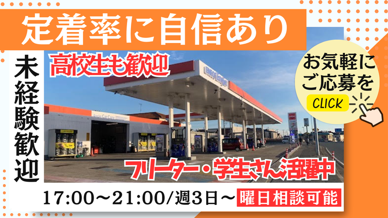 職種/仕事内容 | 仕事内容 \\ 1ヶ月毎のシフト提出★ // 知識や経験は必要なし!! 学生さんの卒業に伴い2名募集決定! 学校終わりの学生さんや フリーター中心に活躍中♪ 女性スタッフも多数活躍中!! セルフなので車の誘導や 給油操作はほとんどありません⋆.*  ̄ ̄V ̄ ̄ ̄ ̄ ̄ ̄ ̄ ̄ ̄ ̄ ̄ ̄☆* ̄ ̄ 最初は給油の監視業務や、 清掃などをお任せします! 慣れてきたらセルフ方式に 慣れていないお客様へ 給油方法などのご案内していただきます!。 フォロー体制もバッチリで安心♬ 車の知識も必要ないので 初めてのアルバイトや 久しぶりの職場復帰さんも 安心して活躍できますよ⋆。˚✩ ◤ ̄ ̄ ̄ ̄ ̄ ̄ ̄ ̄ ̄◥ お電話でのご応募も歓迎 ☎/0438-22-4131 ◣_________◢ 定着率のいいガソリンスタンド! 働き方の相談もOKです!  ̄ ̄V ̄ ̄ ̄ ̄ ̄ ̄ ̄ ̄ ̄ ̄ ̄ ̄☆* ̄ ̄ 何らかの理由での退職ではなく、 学生さんが卒業し就職する為 今回2名のスタッフを募集します。 定着率がいいので、 学校入学から卒業までいてくれる方や 2年・3年と働いている方も多数! また、シフトは1ヶ月毎の提出! プライベートの予定とも合わせやすく 家庭や学校と両立しながら 無理なく働くことが可能です! 週3日~希望の曜日の相談OKですよ♬ |