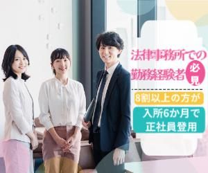 対象となる方 | 求めている人材 【必須条件】 ・法律事務所での就業経験 ・基礎的なPCスキル(Excel・Word)がある方 ・タッチタイピング 【求める人物像】 ・困っている人の役に立ちたいと思う方 ・キャリアアップを目指したい方 ・安定した企業で働きたい方 |