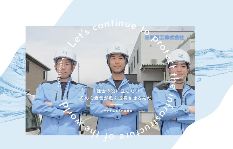 対象となる方 | 必要資格・経験 【必須】 普通自動車免許(AT限定可) 【歓迎】 ・手に職をつけて長く働きたい方 ・チームで協力して働きたい方 ・1、2級管工事施工管理技士 ・1、2級電気工事施工管理技士 |