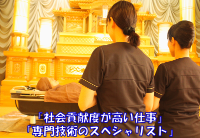 対象となる方 | 求めている人材 <条件> ・普通自動車免許(AT限定可) ※お持ちでない方はご相談ください。 <歓迎条件> ・未経験者歓迎 (9割は未経験スタートです) ・学歴不問 ・ブランクのある方歓迎 ・制服支給あり ・職場見学・体験可 (面接後/交通費支給/規定有) ・Iターン/Uターン歓迎 ・美装に興味ある方 ・湯灌(ゆかん)に興味のある方 ・介護の経験をされた方 ・看護の経験をされた方 ・小さな思いやりができる方 ・誰かのお役に立つ仕事がしたい方 ・一般事務(電話対応) をご経験された方 ・美容に興味ある方 (美容部員/美容/エステ) |