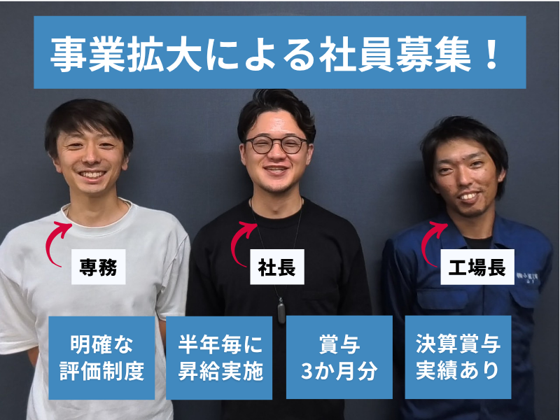 給与 | 月給240,000円~400,000円 給与詳細 基本給:月給 24万円 〜 40万円 固定残業代:なし 【一律手当】 全員に一律で支払われる通勤・皆勤・家族手当金額:なし 全員に一律で支払われるその他手当金額:あり ◇ 給与について ・月給:25万円〜40万円 ※前職給与を考慮して決定します ※固定残業代なし ◇ 賞与について ・年2回(4月・10月) ・基本給の3ヶ月分支給 ・決算賞与の支給実績あり 【給与例】 給与例 【モデル年収】 ◆ 入社1年目:年収350万円(27歳・未経験) (月給25万円+賞与) ・CADの基礎を学びながら、図面作成を習得 ・専務直下でフィードバックを受け一人前を目指す ◆ 入社2年目:年収440万円 (29歳・未経験) (月給27万円+賞与) ・設計業務の中心を担い、後輩への指導も開始 ・製造や営業との調整も増えて頼れる存在に ◆ 入社3年目:年収550万円 (31歳) (月給33万円+賞与) ・設計チームのスペシャリストとして責任者に ・工場や現場と連携し、品質と効率を両立させる中核ポジションへ ※前職給与も考慮してスタート金額を決定します ◎賞与:年2回(基本給3ヶ月分) ◎決算賞与の支給実績あり ◎半年ごと査定で昇給・昇格チャンスあり |