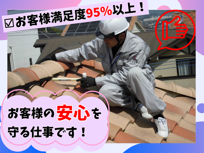 職種/仕事内容 | 仕事内容 年間休日も122日以上♪ メリハリつけて働ける会社です! 【月収100万円超えを最速で】 入社4ヶ月で実現した先輩も! 頑張りは給与で還元、 あなたの稼ぎたいを叶える会社! 九州売上TOP3!安定基盤で高収入を実現! 「頑張りが報われない」は過去の話。 当社は実績で評価! 年齢関係なし!成果は青天井の インセンティブで還元✨ 未経験でも安心! 先輩の成功法をマネして稼ぐ! 目標達成で売上利益の約10%が インセンティブとして支給されます! 住宅リフォームという住宅商材だからこその 高いインセンティブを実現✨ ◆ 大枠の仕事内容 ◆ チームで担当エリアへ訪問! お客様の「困った」を解決! 雑談からニーズを引き出し、 最適なリフォームを提案する仕事。 お客様の理想を現実に!夢を叶える提案営業。 ◆ 具体的な仕事内容 ◆ ✅屋根・外壁塗装 ✅内装改修 ✅雨樋交換 ✅水回り修理 など 劣化や災害によるニーズ多数! 売上につながりやすい! 確かな需要があるから、 未経験でも成果を出しやすい! 稼ぎたいあなたにピッタリの環境です。 ~~~ 1日の流れ(例) ~~~ 08:00 / 出社・朝礼 (車両準備・ロープレ) ▼ 08:45 / 担当エリアへ出発! チームで効率的に動く。 ▼ 09:30 / 工事着工のお客様宅へ訪問 ▼ 10:00 / 営業活動開始 ▼ 12:00 / 昼食(しっかり休憩!) ▼ 13:00 / 午後の営業開始! 見積提出・商談 ▼ 14:30 / 休憩 ▼ 16:30 / 工事終了のお客様訪問 ▼ 17:00 / 帰社・休憩 ▼ 17:30 / 書類作成、事務処理など ▼ 19:00 / 退社 ※頑張り次第で定時より早く退社し、 プライベートも充実! ※残業はインセンティブでしっかり還元します。 その他アピールポイント ✅未経験でも安心!先輩が丁寧に指導、 知識は後からでOK! ✅男性育休実績あり! GW・お盆・年末年始も長期休暇! 122日休みだからしっかり休める♪ プライベートも妥協しない! ✅昇給・賞与年2回(実績最大8ヶ月分!) あなたの成果を評価! ✅国内・海外社員旅行! 共に働く仲間との絆も深まる! ✅資格取得支援あり! スキルアップも会社が全面バックアップ! ✅誕生日祝い・結婚・出産祝い金! 社員を大切にする会社です。 ✅営業トークは先輩の隣で学ぶ! 実践でスキルアップ! ✅20~30代活躍中!未経験から高収入を 実現した先輩多数! 前職関係なし!入社後すぐ年収UPも! ✅家具・家電付社員寮完備! 入社半年間は月2万円で利用可! |